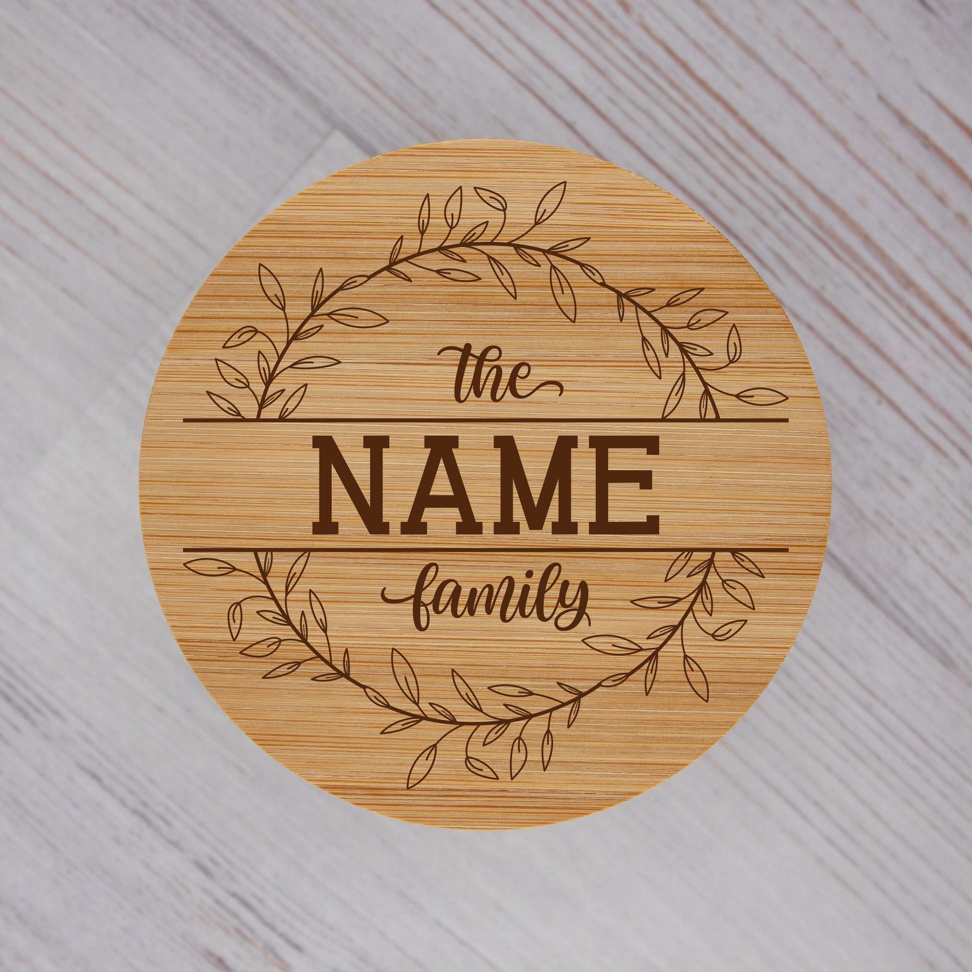 This 16oz glass 2-wick candle with bamboo lid includes a personalized engraved lid. Just select a scent and type in the family name you would like engraved. It is made from hand-poured organic soy wax.