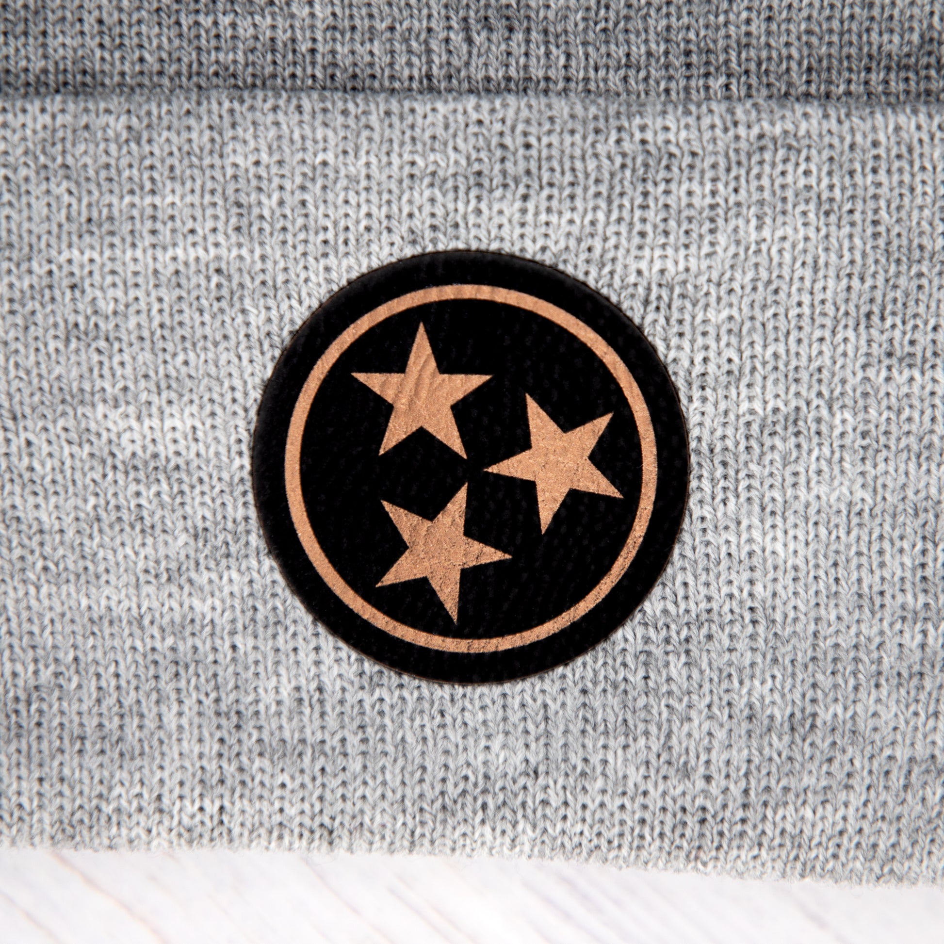 This Sportsman Pom-Pom Cuffed Beanie features an engraved copper Tennessee tristar on a black leatherette patch. Its snug, comfortable fit will keep you warm this winter.